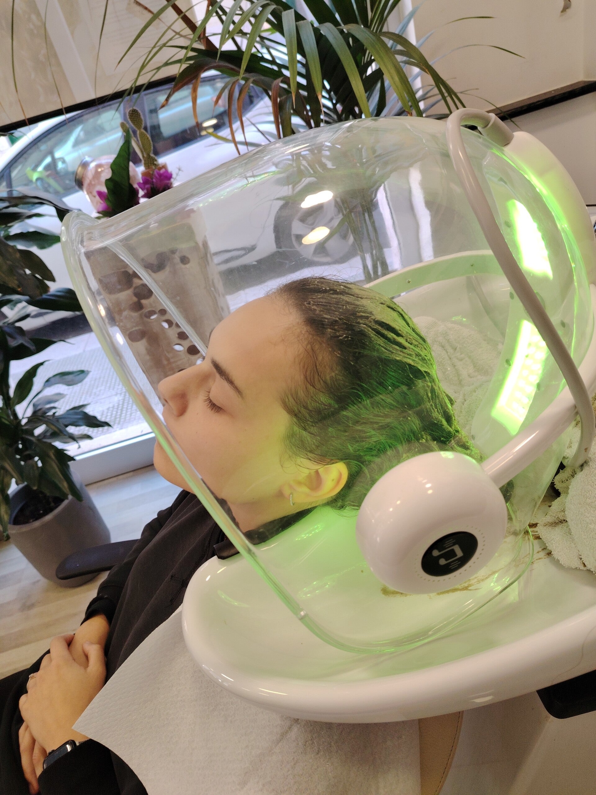 Lasciatevi avvolgere dai benefici dell'ossigenoterapia, un trattamento che nutre in profondità i capelli, rendendoli più forti e luminosi. Ambiente raffinato per un'esperienza esclusiva. Innovazione al servizio della vostra bellezza.